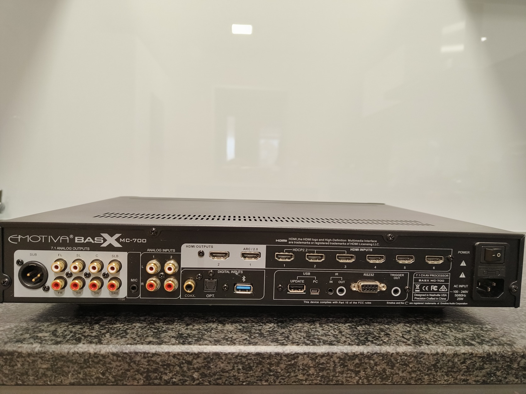 Szintlépes miatt eladóvá vált a képeken látható keveset használt, de kitűnő esztétikai és műszaki állapotban lévő Emotiva BasX MC-700 házimozi processzor/előerősítő. (7.1 csatornás!) A subwoofert akár analóg vagy akár szimmetrikus(XLR) csatlakozással is lehet csatlakoztatni. Összesen 6 db HDMI bemeneti és 2 db HDMI kimeneti csatlakozás található rajta(4k UHD és 4k UHD HDR). Ezen kívül optikai, coax, analóg kimenetek valamit egy digitális Bluetooth bement (opcionális) is van rajta, amivel akár telefonról akár más Bluetooth eszközről lejászható a zene. Digitális audio streamert is lehet csatlakoztatni hozzá (mi egy Cambridge Audio AXN10-et használtunk)