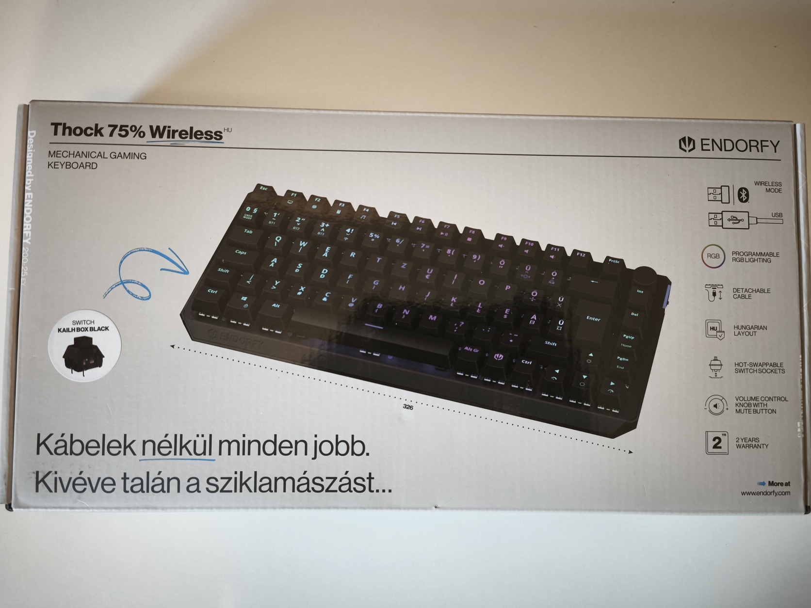 Jegelve – ENDORFY Thock 75% Wireless billentyűzet - Kailh Box Black - HU