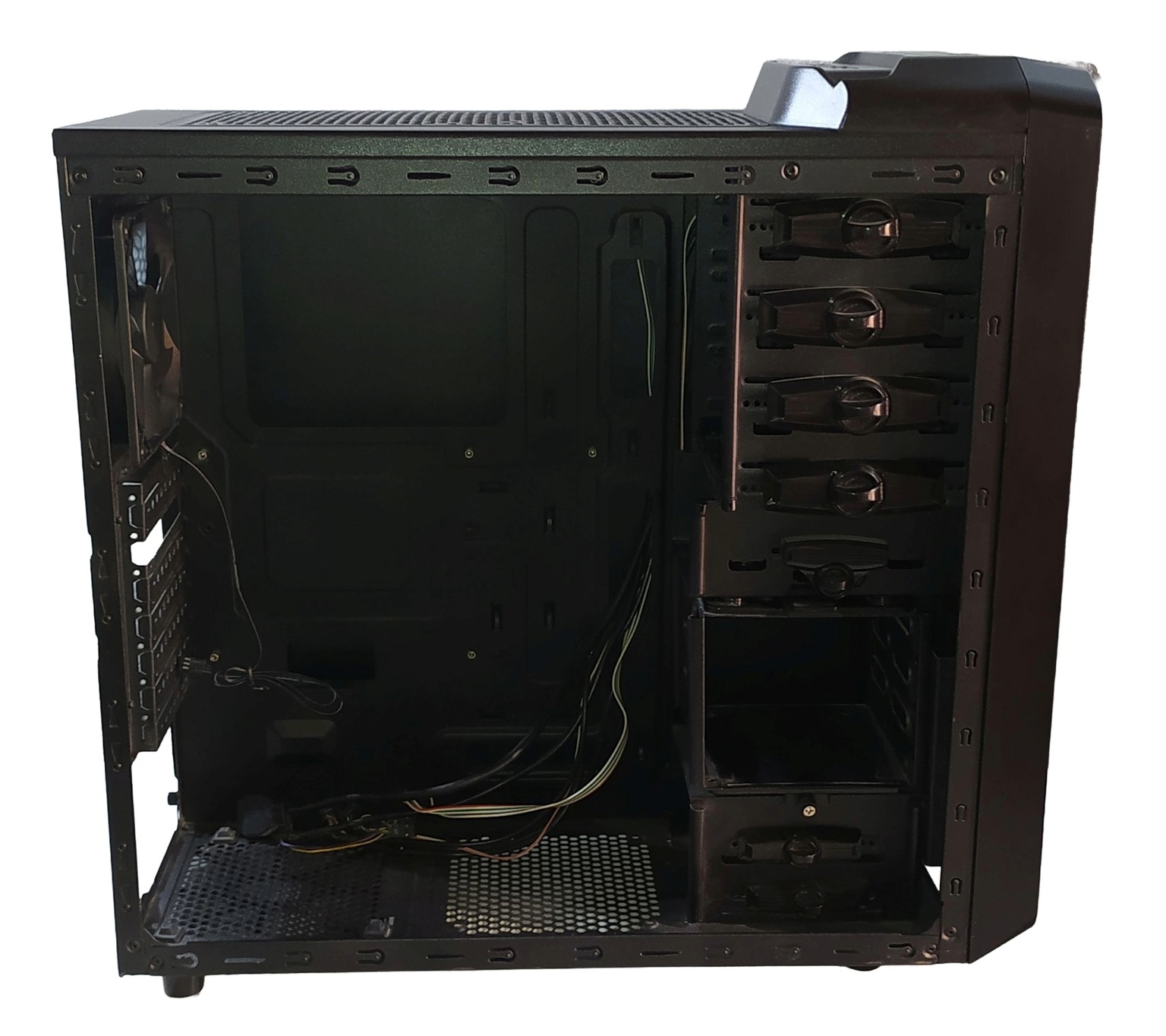 1 pár HDD sín van meg. Ezen kívül a házban 3db 3.5"-os hely és egy 5.25"-ról 3.5"-re vagy 2.5"-re szűkítő keret van benne.