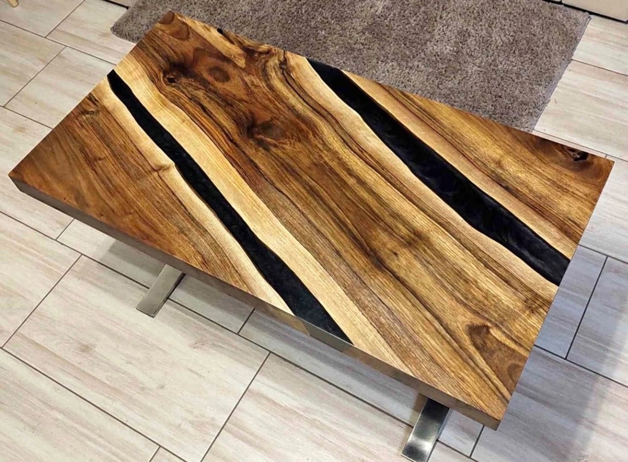 Eladó dióból készült 53x103 cm méretű egyedi dohányzóasztal. Magassága 51 cm. Minőségi uv álló Epodex gyantából öntve, tung olajjal kezelve. Érdeklődni üzenetben 😉
