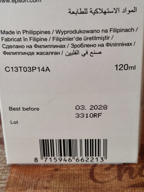 Epson 110 BK C13T03P14A 120 ml eredeti fekete tinta eladó. Lejárati dátum 2028. 03. hó