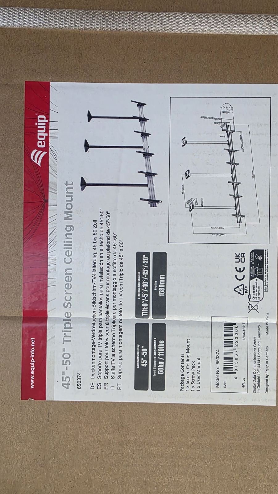 Equip 650374 Triple Screen Ceiling Mount 3 monitoros mennyezeti tartó (45 50 )