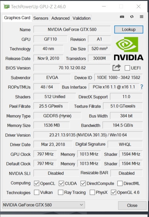 EVGA Geforce GTX 580