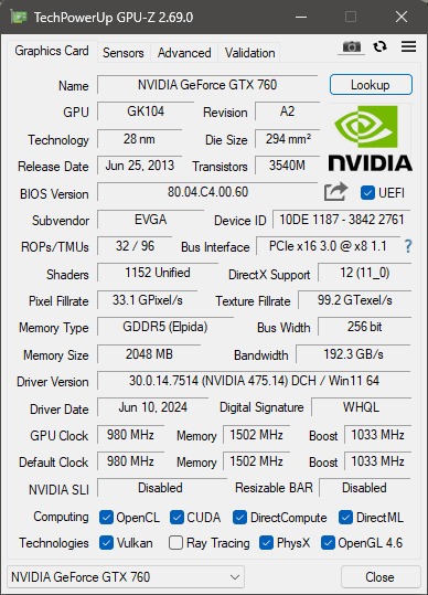 [EVGA GTX 760 2GB] eladó
