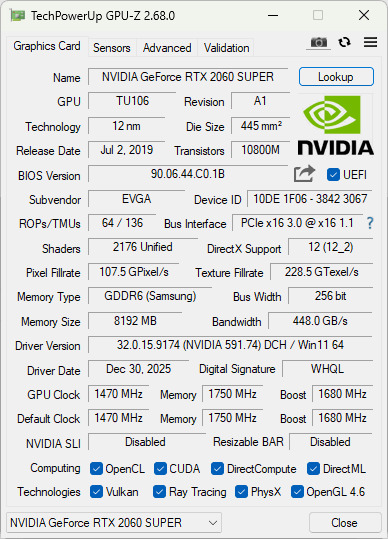 EVGA RTX 2060 Super SC Ultra 8gb
