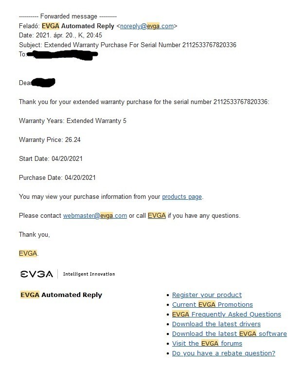 A számla alternate.de-s,de az evga-tól lett extended warranty vásárolva. Kép mellékelve.