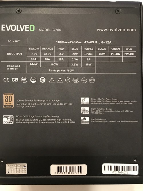 Eladó fél éves Evolveo G750 80+ Gold tápegység