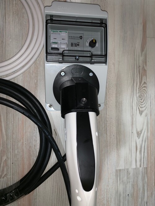 Elektromos autó töltő berendezés, EVSE fali doboz eladó. A méretének köszönhetően hordozható is.