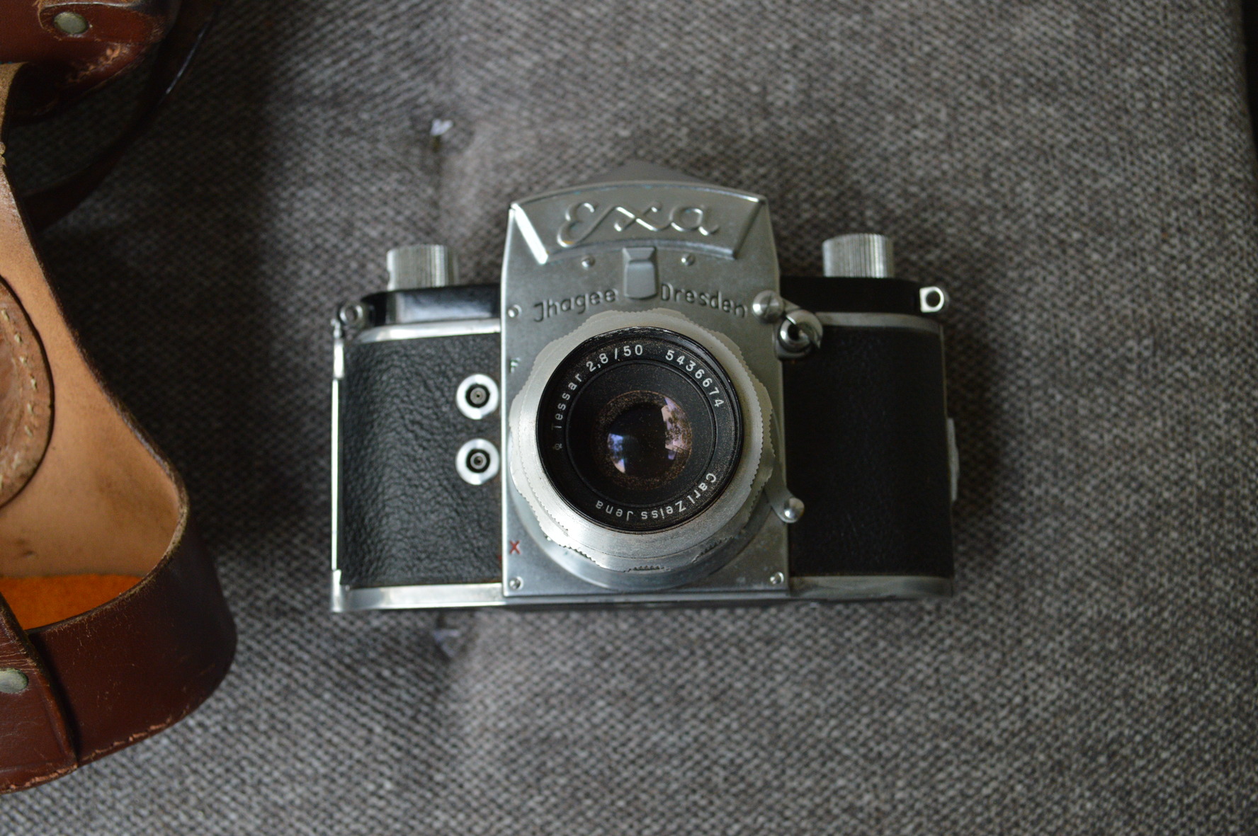 Exa bajonettes, jelenleg egy zeiss jena 2.8/50 van rajta.