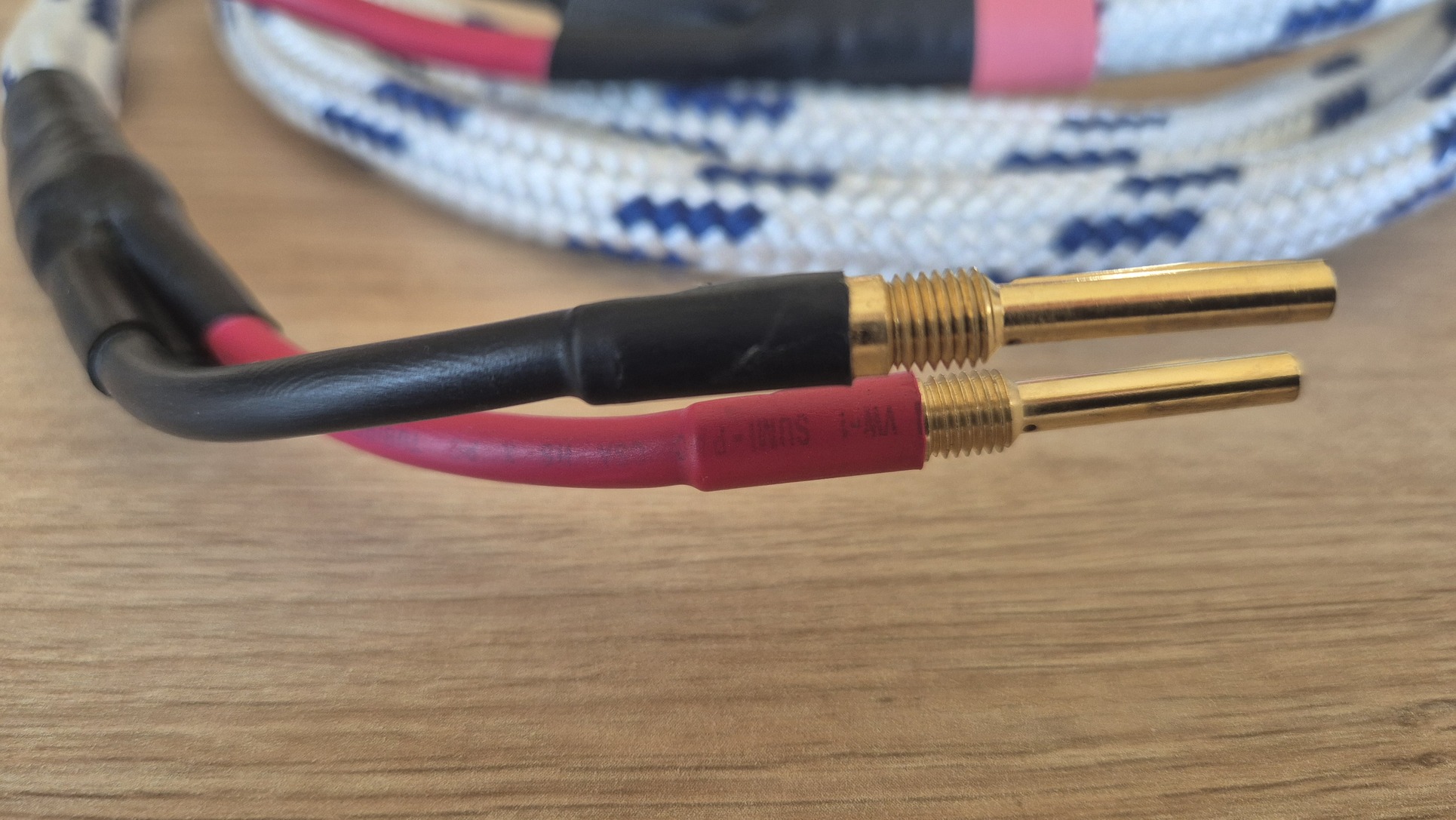 Eladó a képeken látható excalibur-féle hangsugárzó kábel. 1 pár, 2 méter (csatlakozók végétől-csatlakozók végéig), mindkét végén banándugóval.