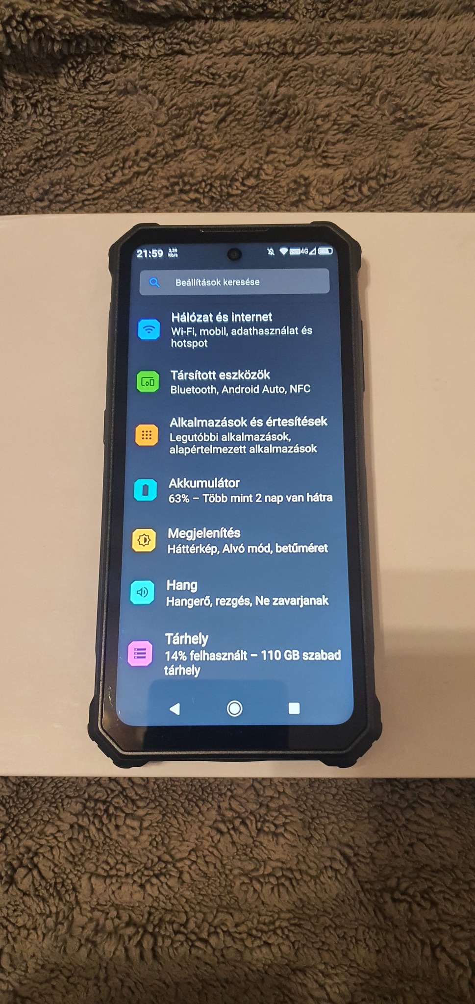 • Típus: Erősített, strapabíró okostelefon (rugged phone)