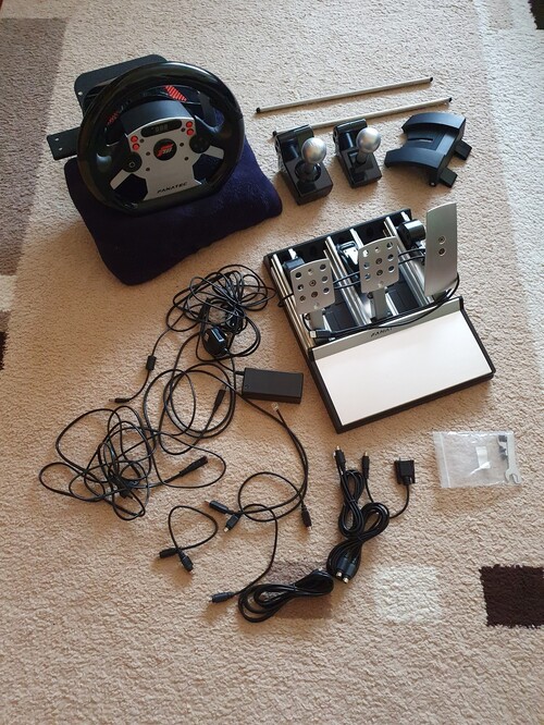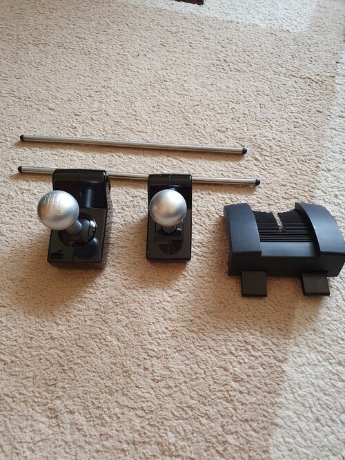 Elado kb 1 eve nem hasznalt ( Podium DD-re valtas miatt) Fanatec CSR kormany, Elite pedallal (load cell), ket db valtoval+tarto, a kormanyhoz valo table clamp-el, de megvan hozza a gyari gyorsfelfogatoja is. A kormany ket oldalan van egy kis repedes, es a base-en egy kis serules, de a kormany megfeleloen mukodik!
