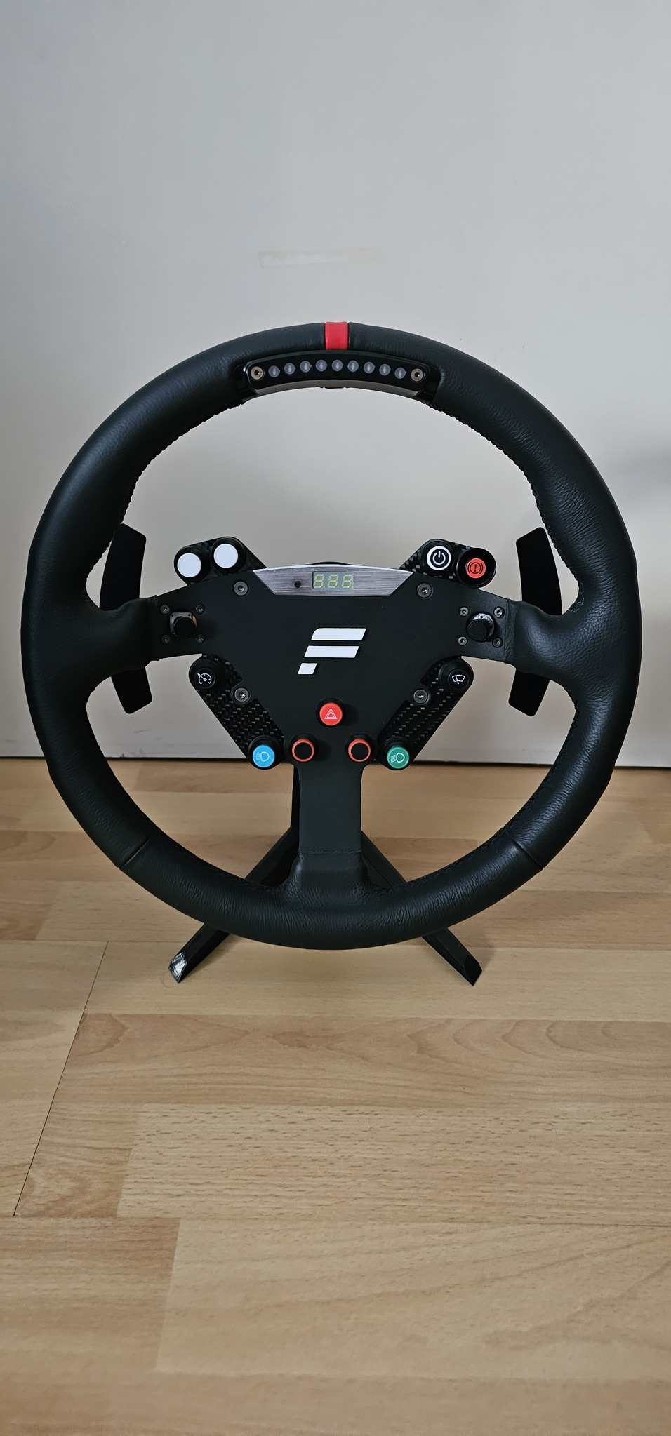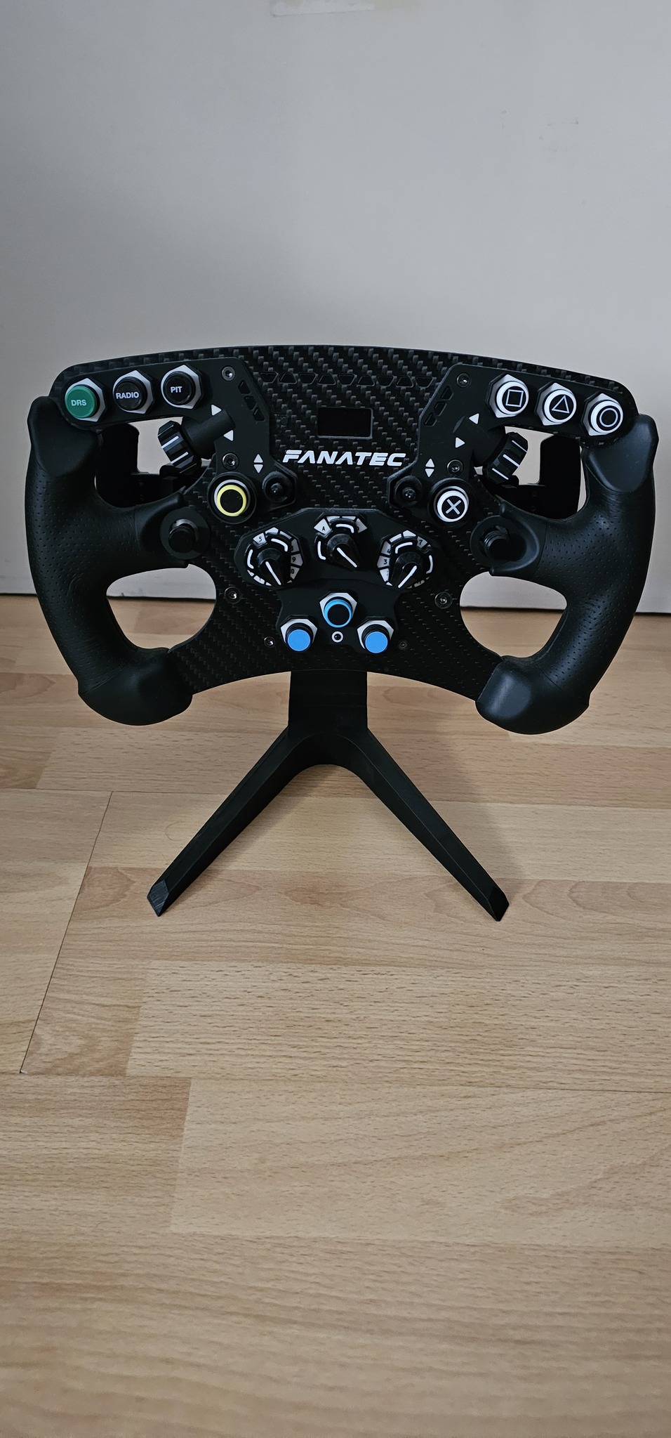 Korábban volt Fanatec bázisom két pereccel és ahhoz vettem/nyomtattam a képen is látható kormánytartó állványt. Szerintem nagyon praktikus, ha nincs más megoldásod, hogy tárold őket. Ahogy a képeken is látszik úgy van kialakítva, hogy a kerek formájú kormány is ráférjen illetve F1-stílusút is meg tudja tartani.