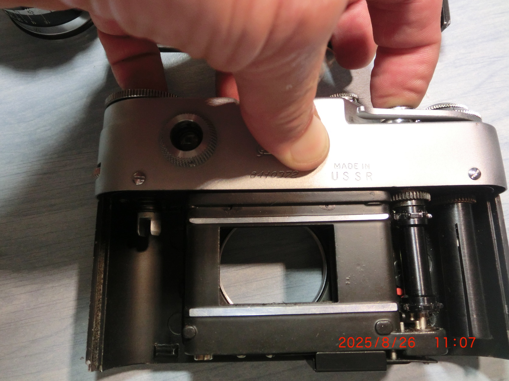 Fénymérő és rekeszállás: A váz bal oldalán található a fénymérő kijelzője és a rekeszállás értékének leolvasására szolgáló tárcsa.