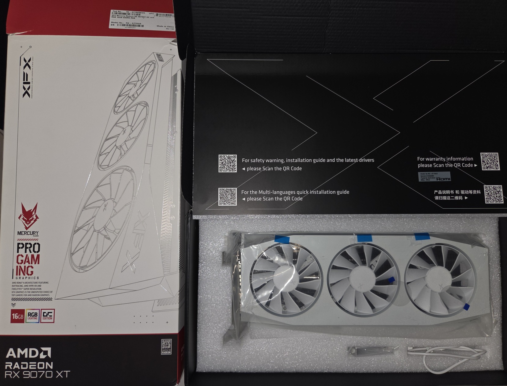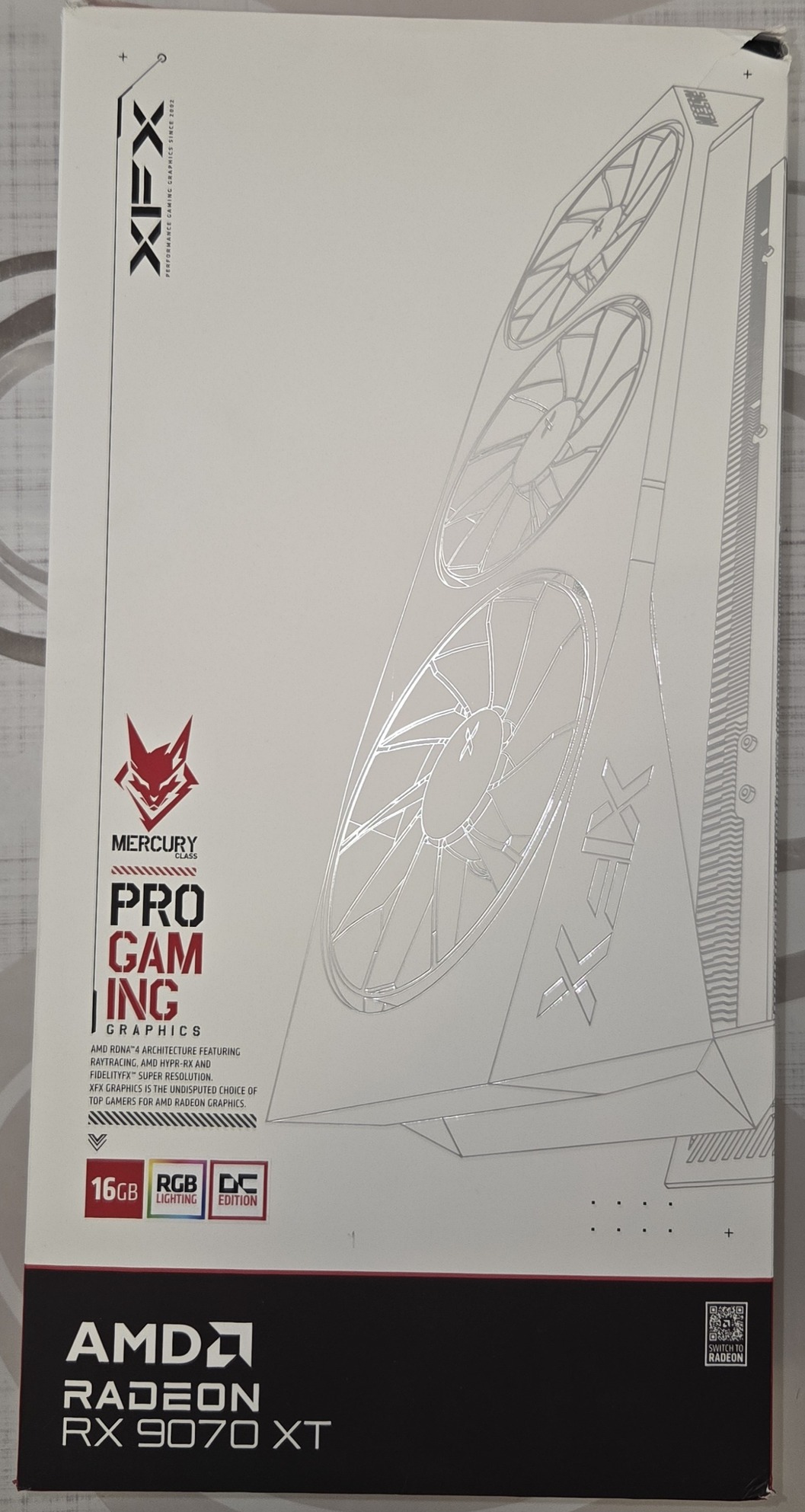 Eladó a címben említett Fehér XFX RX 9070 XT Mercury OC Gaming RGB VGA dobozos, pormentes kártya, hűtése kiváló. VGA támasztó, papírjai megvannak!