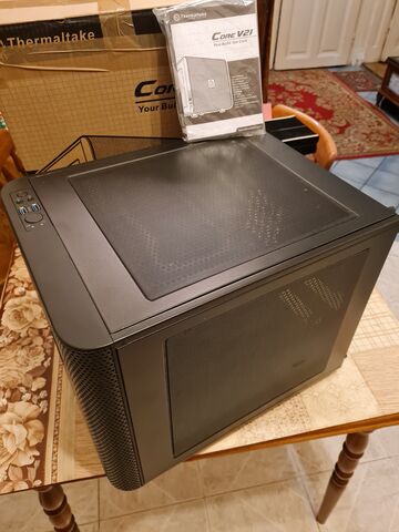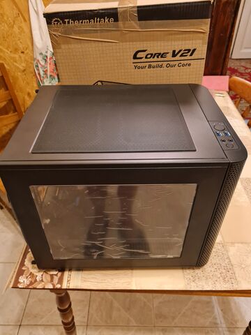 A téma adott.A kompakt,mégis ATX lapot fogadó ház minden tartozéka meg van.(porszűrők,a táp alatt is,csavarok SSD keretek,elől 14cm-es venti stb,,)Szép állapotban van,de történt egy kis baleset,mert az oldal üveg lapja eltört. Pótóltoltam egy másik ház,fém oldal lapjával, csavar helyeket szépen kifúrtam, szerintem bőven vállalható.(3.kép)Csupán ezért a nagyon nagyon akciós fél ár alatti ár. Igy tulajdonképpen egy Fractal Design Meshify C lett a házból Tempered Glass-helyett.a Bolti ára 42 000 FT. [link] Kiváló alkalom ha valaki egy nagyon jól szellőző mesh elő lapos,,minőségi,jól szellőző házat akar töredék áron,ami tesztekben is kiválóan szerepel. [link] Ára 15 000 FT. Max CPU hűtő: 172 mm,GPU: 315 mm előlapi hűtővel,Táp: max. 175 mm ,gyári infó: [link]
