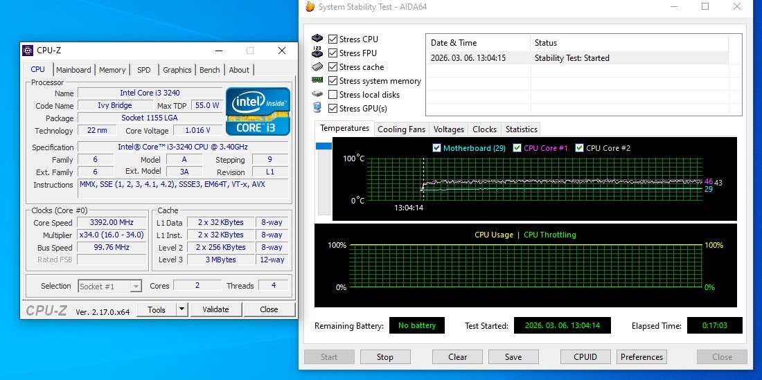 Több mint negyed órát ment maxon a stabilitás teszt, és a hőmérséklet nem ment 46 fok fölé!