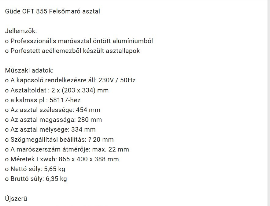 Felsőmaró asztal Güde OFT 855