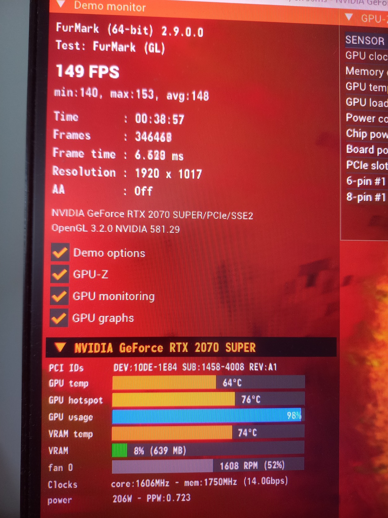 Sziasztok! Eladó egy szép állapotban lévő GIGABYTE RTX 2070 SUPER GAMING OC 3X 8G dobozával és az összes tartozékával együtt. A kártya teljesen deep cleanelve volt, ezen kívül friss pasztát és padokat is kapott(utolsó kép). Hőfokok teljesen rendben. Furmark közben a ventik 52%-on mentek, teljesen elfogadható és halk volt. Egy hónap próbagari.