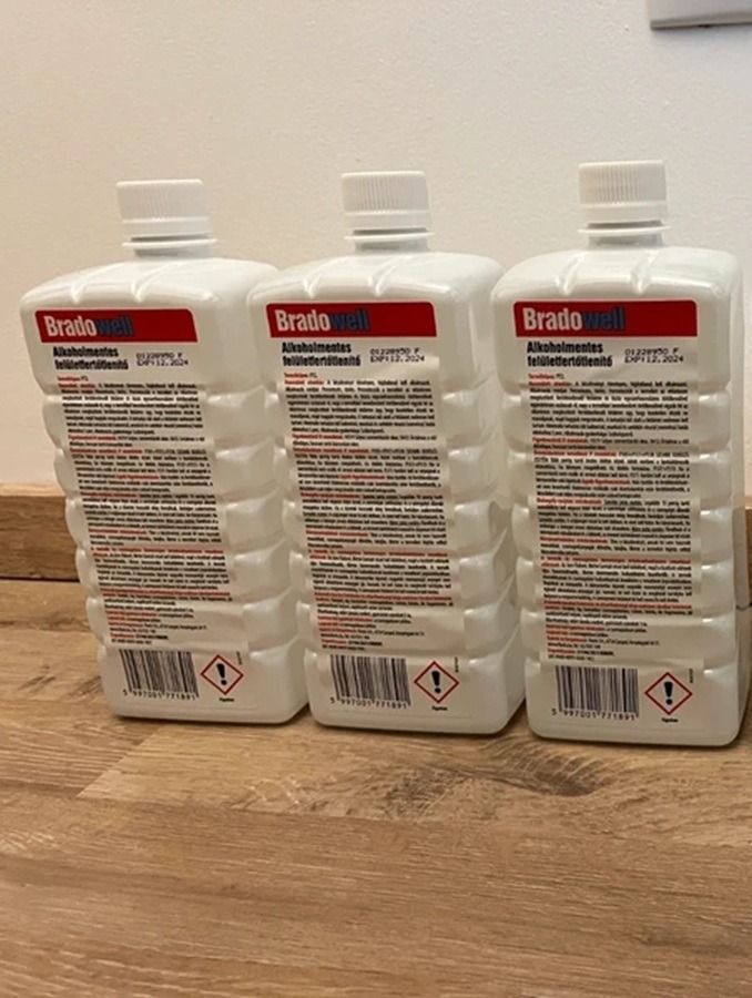 3 db bontatlan flakon, egyben 3000 Ft. Bradowell alkoholmentes felületfertőtlenítő 1000 ml. Eltarthatósága lejárt (2024.12.), de használatát ez nem befolyásolja. Alkalmas különböző felületek fertőtlenítésére. Alkoholmentes, így érzékeny felületeken sem okoz korróziót. Felhasználásra kész folyadék, hígítás nélkül alkalmazandó.