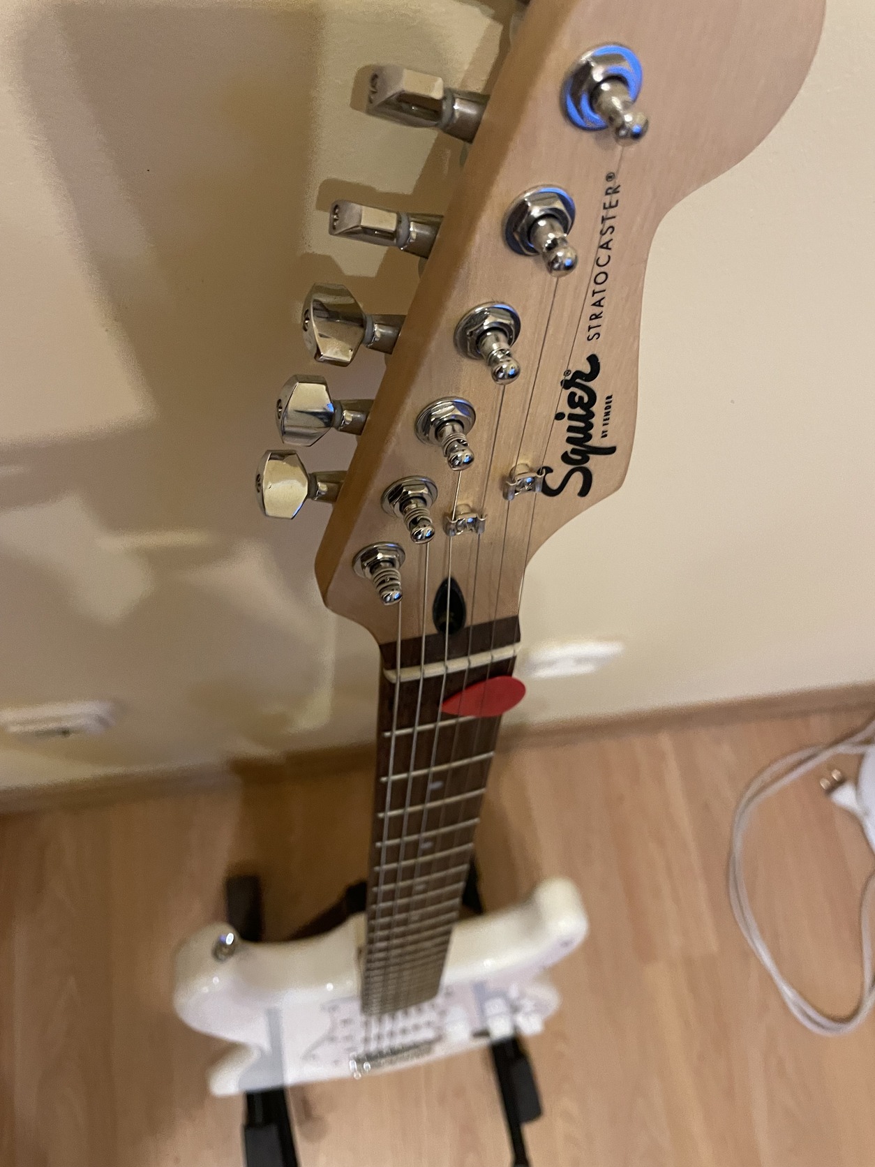 Szobába használt, hangszerész által beállított Fender Squier Bullet Stratocaster SSS eladó. Kb 10-20 órát volt használva amióta megvan (2023ban lett vásárolva). Tökéletes, hibátlan állapotú.