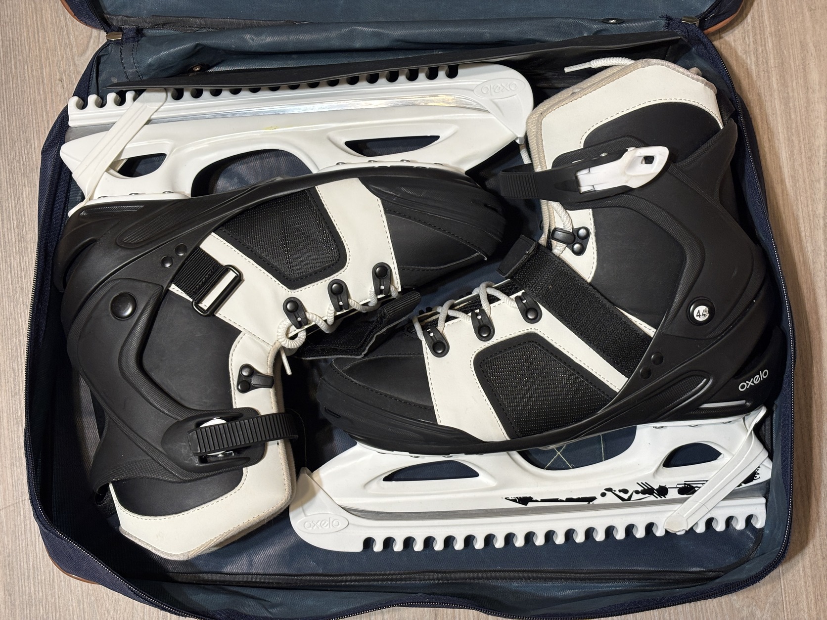 Decathlon Oxelo jégkorcsolya eladó, férfi 44-es méretű (29 cm belső talphossz), élvédőkkel.