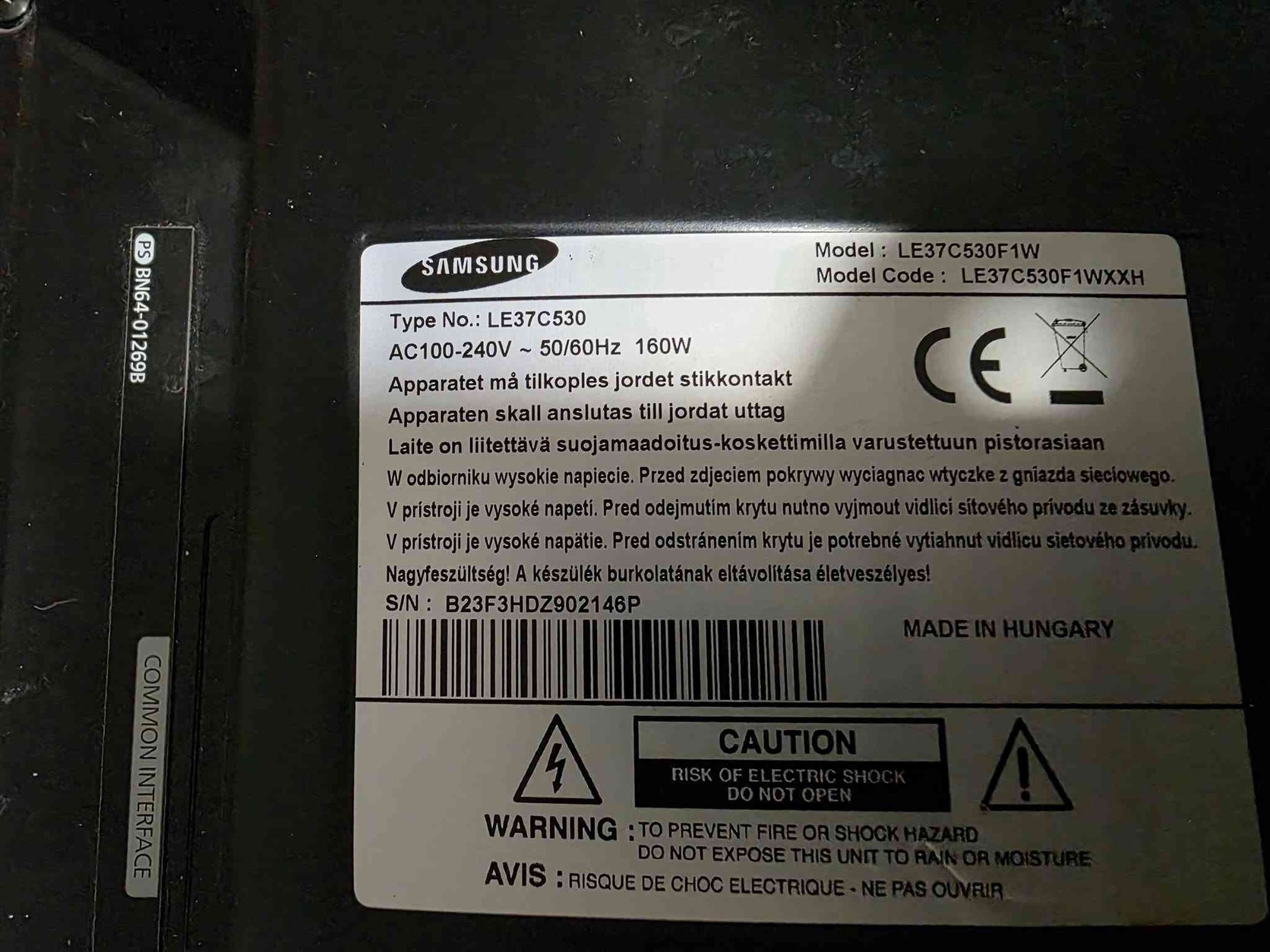 Samsung LE37C530F1W (LE37C530F1WXXH) TV alkatrészek. A készülék a kijelző sérüléséig működött.