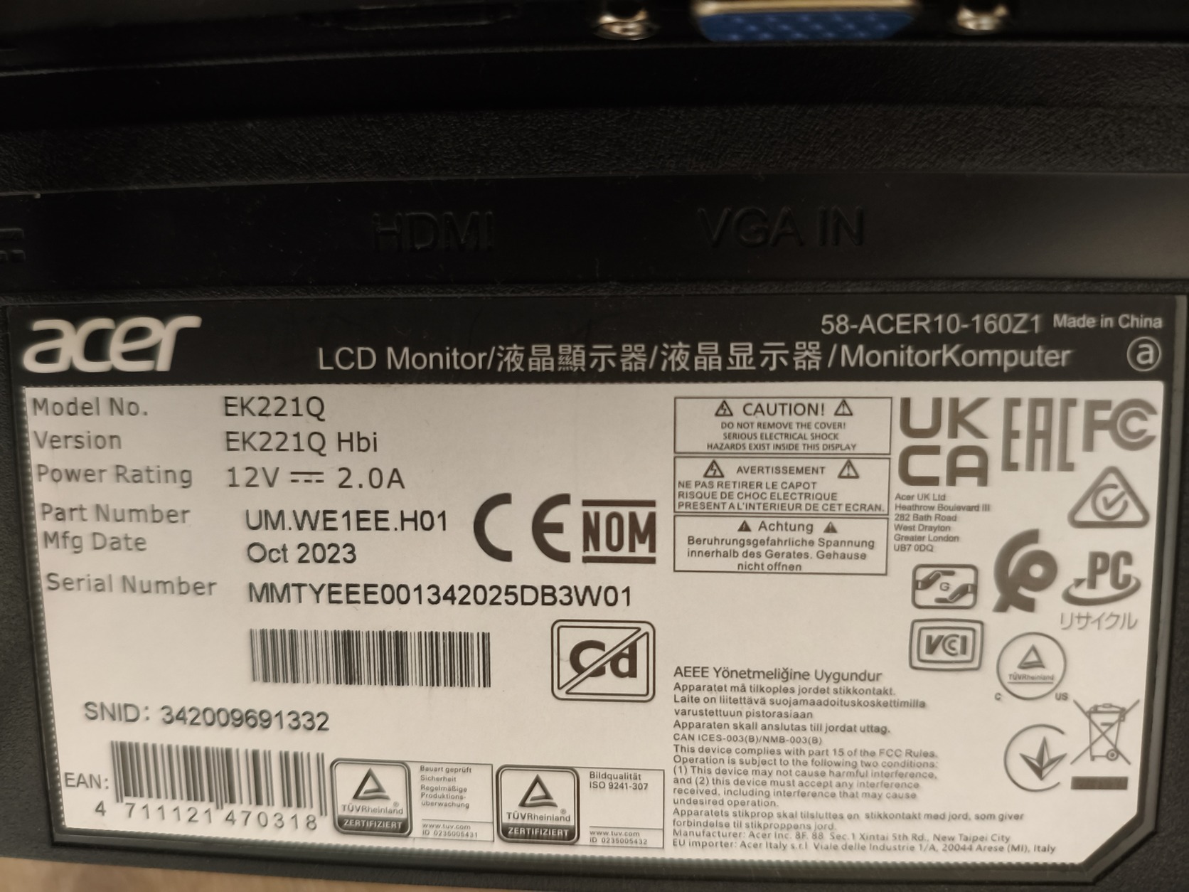 Acer 21.5" monitor eladó