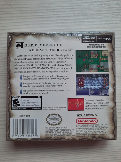 Sziasztok! Eladó gyűjteményből, bontatlan eredeti csomagolásban Final Fantasy 4 játékom! Kérdésekre szívesen válaszolok!