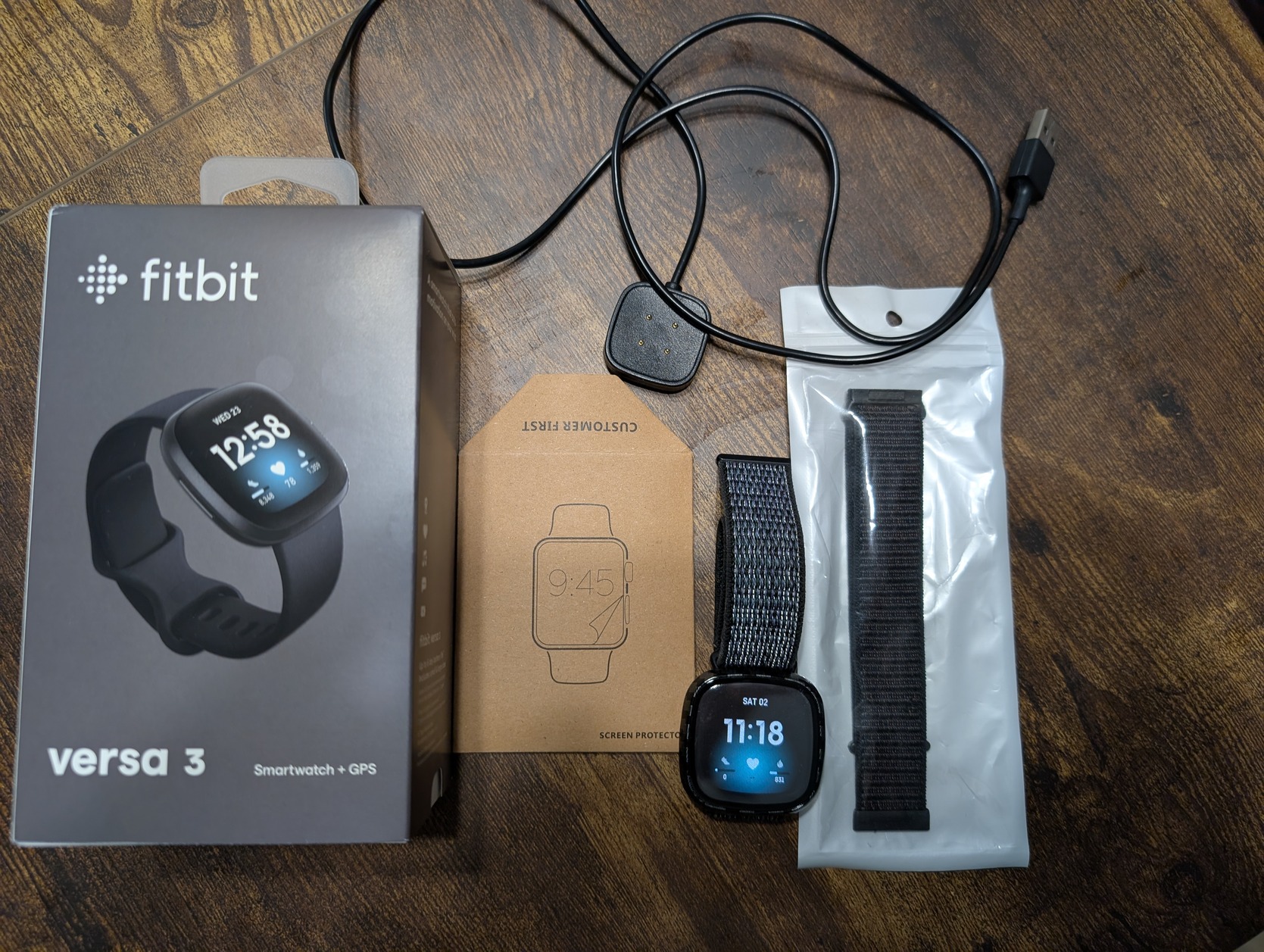 Kijelzővédő van rajta + van hozzá extra szíj és extra kijelzővédő.