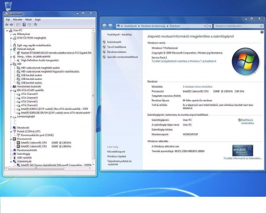 Beépített Realtek RTL8111DL Gigabit ethernet vezérlő