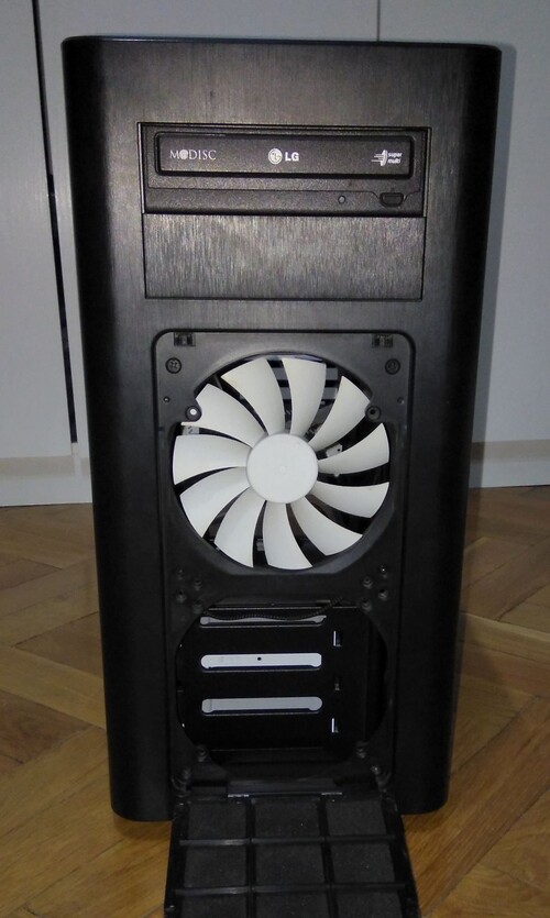- középső HDD keret hiányzik, így csak 3 HDD hely (gyári 8 helyett)