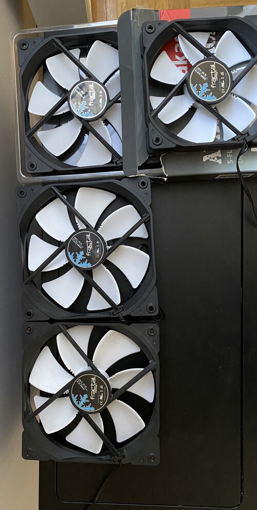 Én Akasa ventillátorokkal használtam, mert azzal volt a legjobb a légáramlás a gépházban, ezeket nem vettem ki a házból, mivel ajándékba adom hozzá.