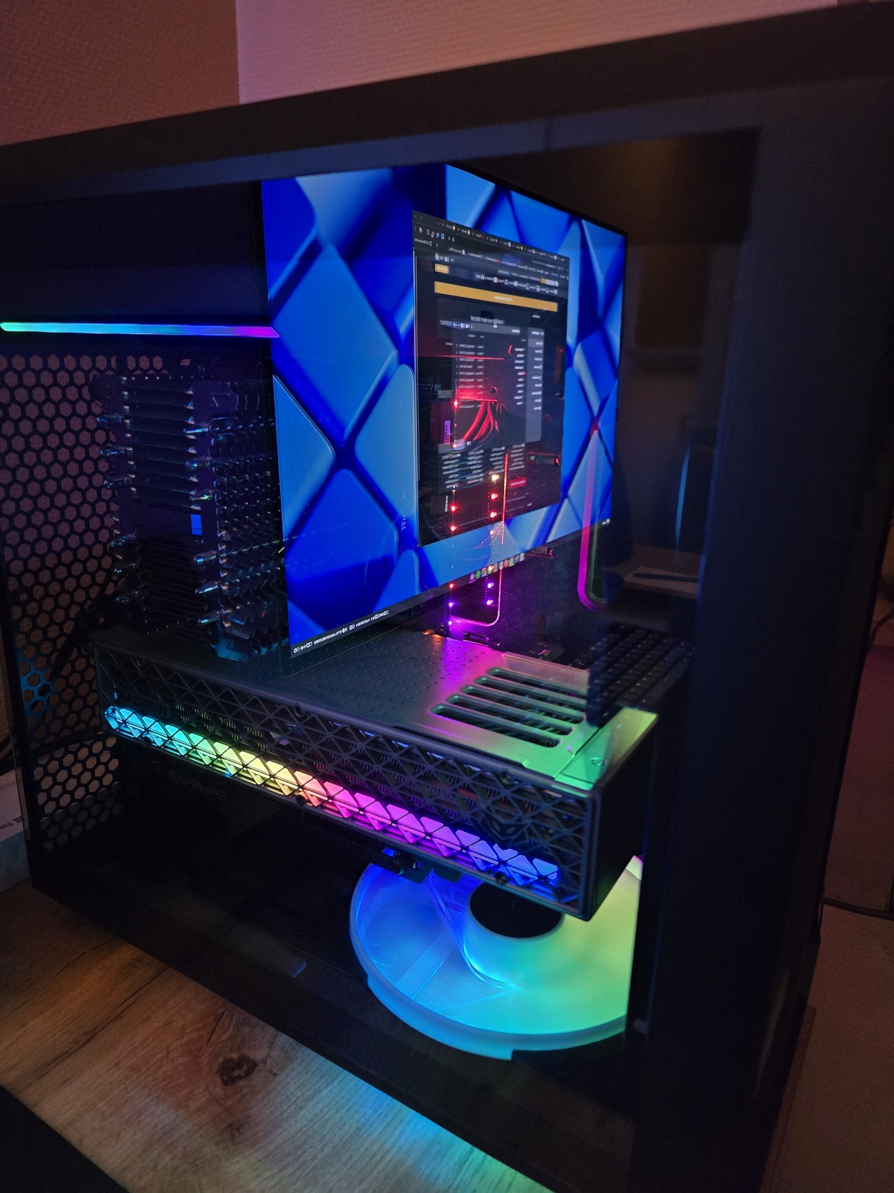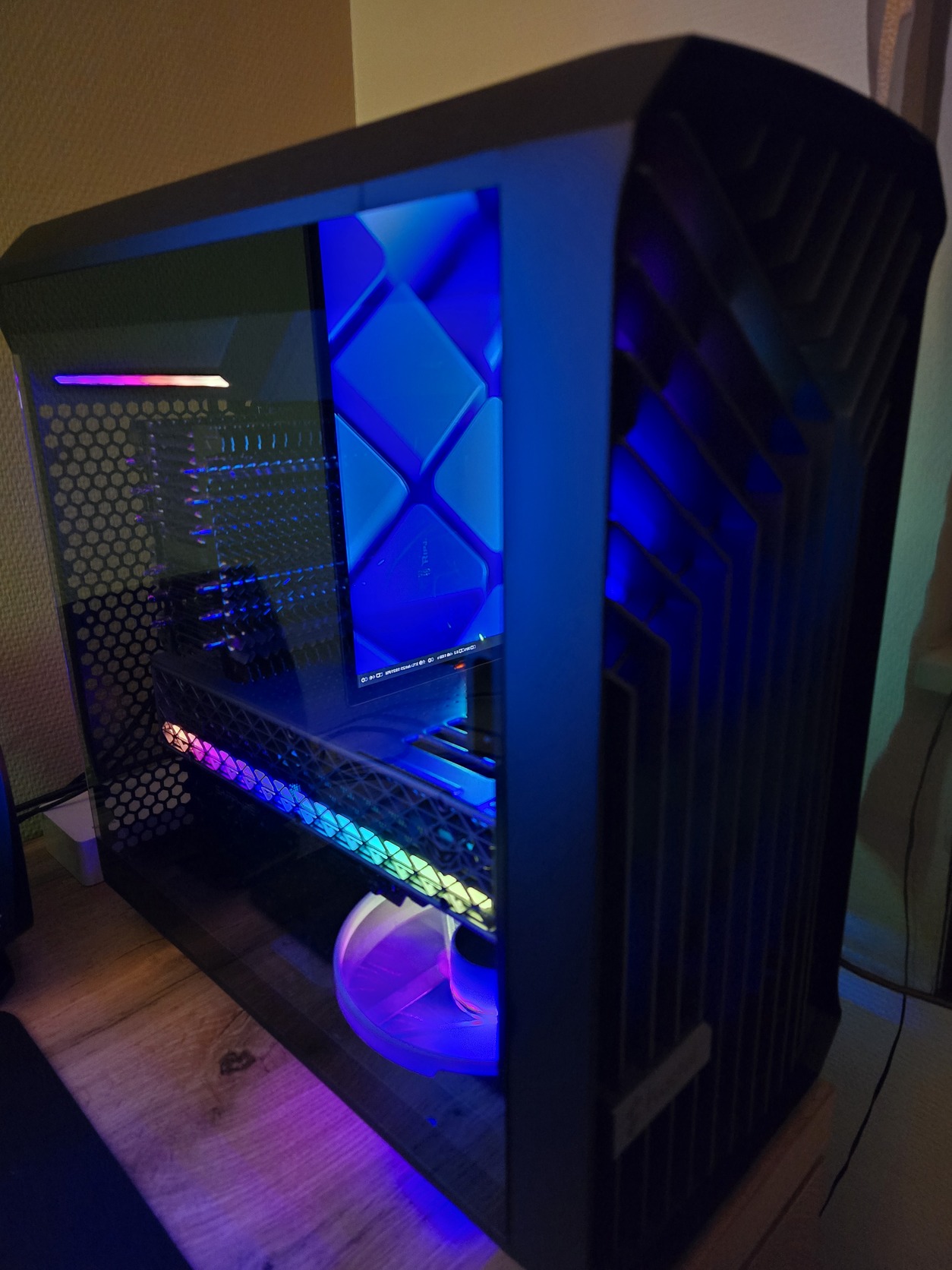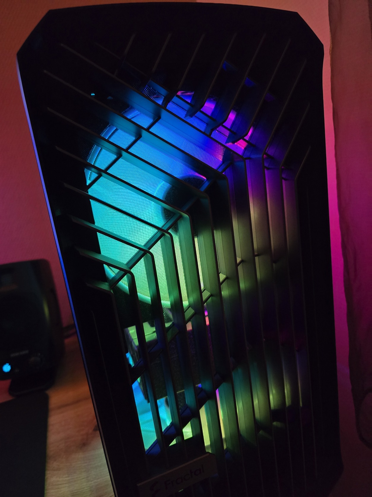 Light Tint ergo halványan füstös, azaz az RGB világítás jól látszik mögötte, de kicsit elegánsabban „tompítva" mint a dark vagy a teljesen átlátszó üveg.