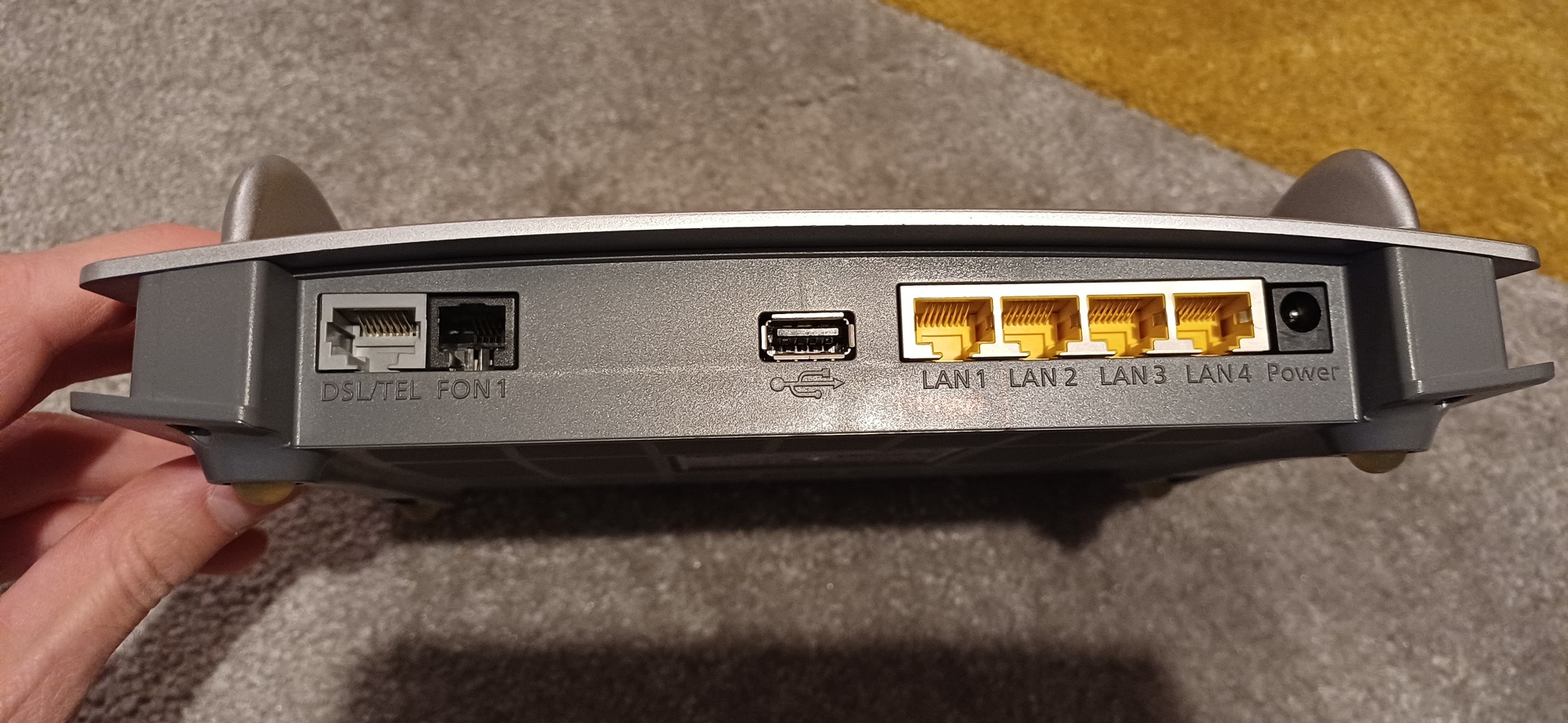 Eladó a képeken lévő működő router. LAN1 port WAN portként működik, oda lehet másik routert/hgw-t kötni, DSL/TEL porton analóg telefonvonalat fogad, amit DECT bázisállomásként kezel, IP telefon is hozzá kapcsolható. USB-n nyomtató és HDD megosztás (NAS), stb. Csak a router képezi a hirdetés részét, tápegység nem jár hozzá.