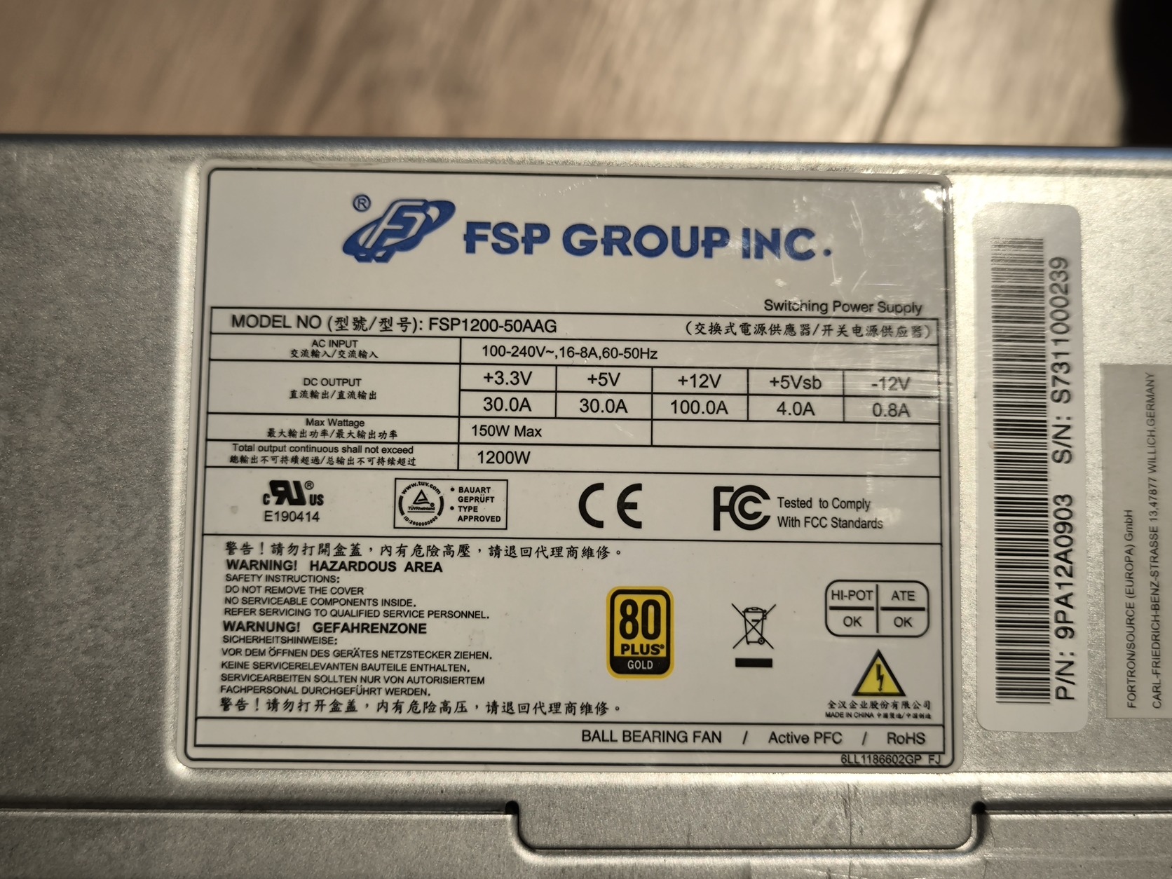 FSP 1200W - FSP1200-50AAG - 80PLUS Gold - Full modular