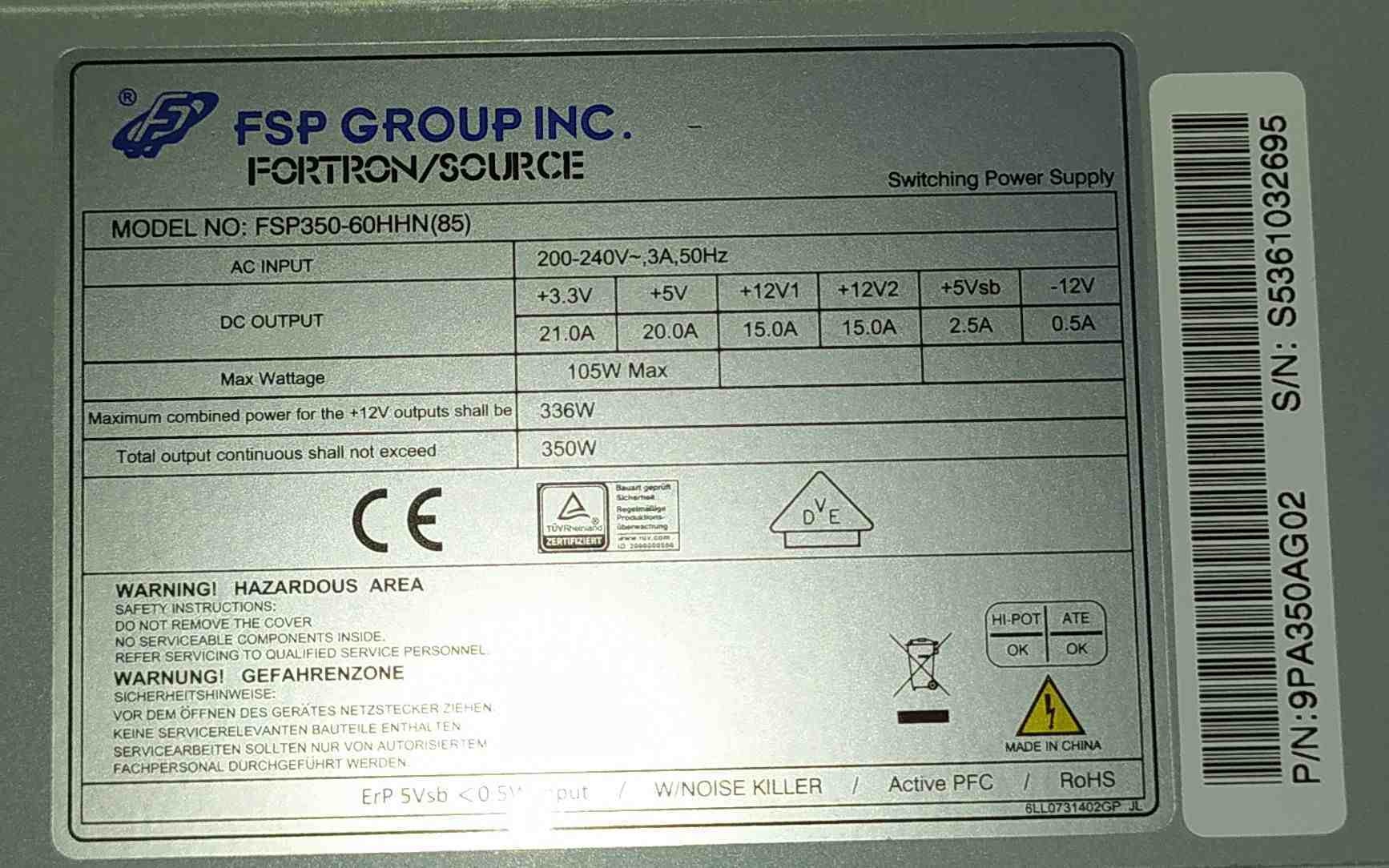 FSP 350W tápegység SATA
