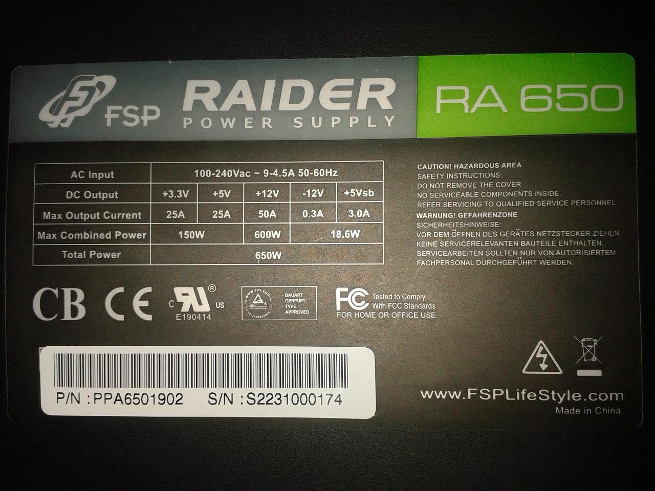 ELADVA kriszute KOLLÉGÁNAK FSP RAIDER 650w 2017.09.12-ig garanciás