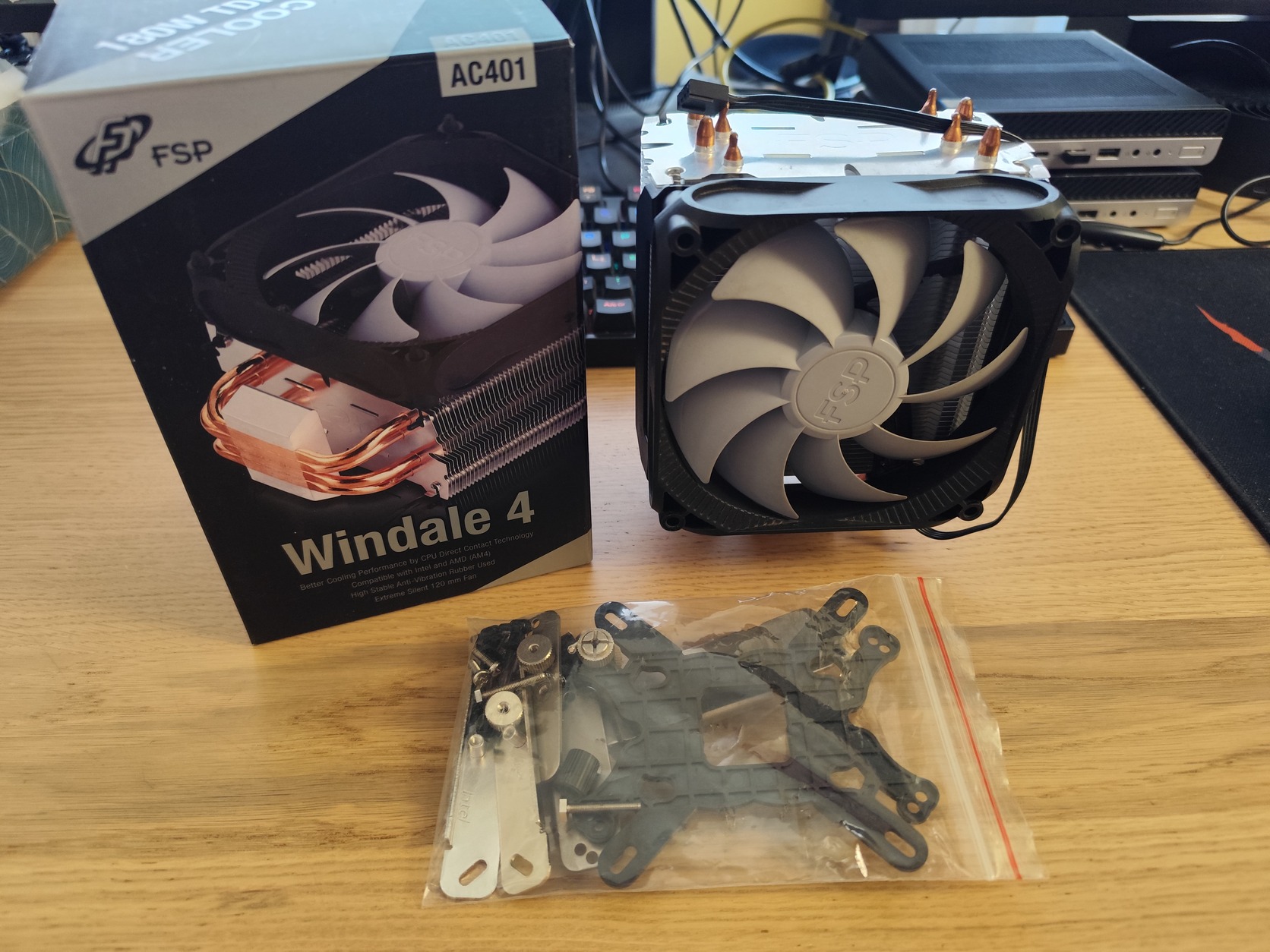 Eladó egy csöndes és jól működő FSP Windale 4 hűtő. A gyári gumis felfogatás helyett (elég gyorsan elszakadnak) egy műanyag kerettel (CM Hyper212-ből) lehet felfogatni a ventit ezzel még stabilabb is és a hangja se lett hangosabb.