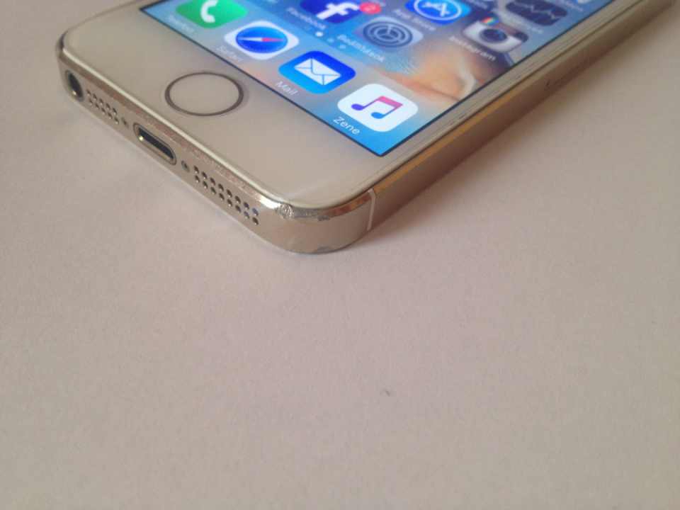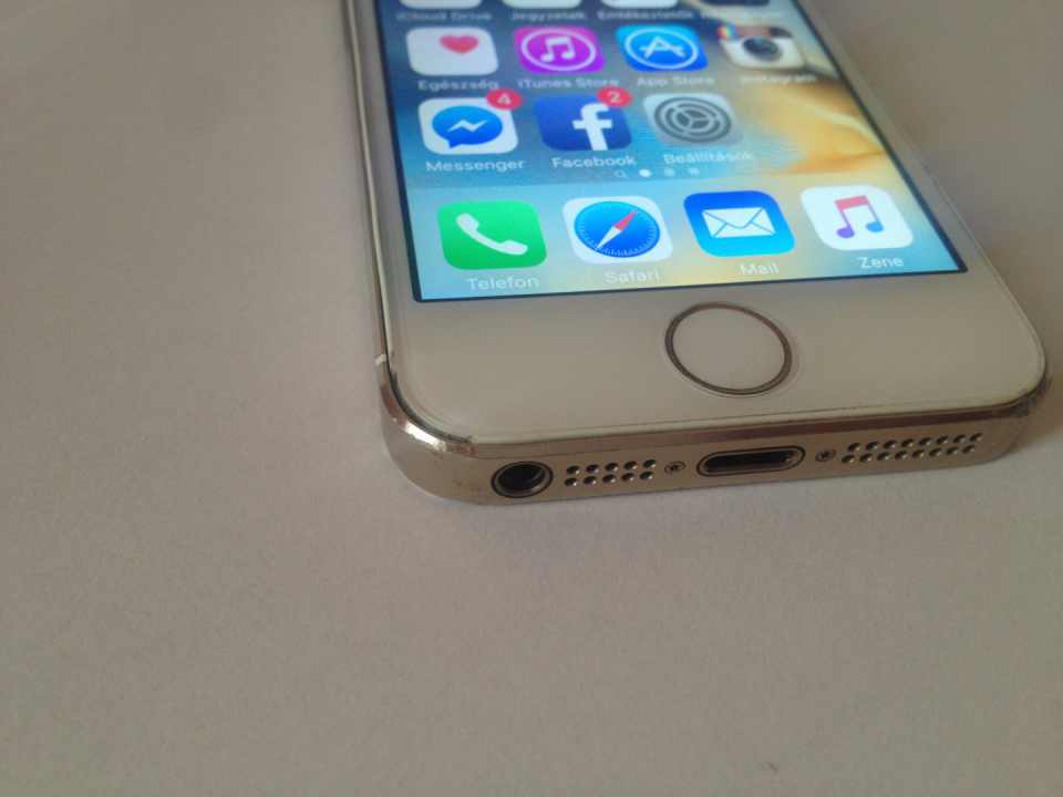 A telenonnak esztétikai hibái vannak, a keret körben néhány helyen meg van ütve, nyomódva, a bal alsó sarkán a kijelző melletti műanyag részből hiányzik egy darab, illetve egy leejtést követően tönkrement a Touch ID, lehet, hogy javítható, lehet, hogy nem, annyira nem hiányzott, hogy foglalkozzak vele. Home gombként tökéletesen funkcionál, csak ujjlenyomatot nem olvas.