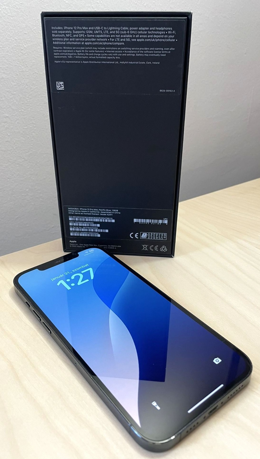 Eladó egy iPhone 12 Pro Max 128 GB, kártyafüggetlen, Pacific Blue, akku 87%. Karcmentes, dobozzal, töltővel.