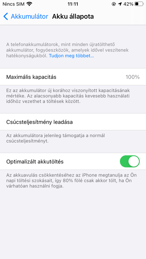 Jelenleg iOS 14.6. rendszer van rajta. Minden funkciója működik. Akkumulátora 8 hónapja lett cserélve, 100%-os.