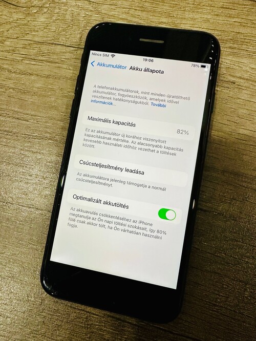 Az akkumulátor 82%-os, de még kibír egy napot normál, kevésbé intenzív használat mellett.