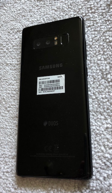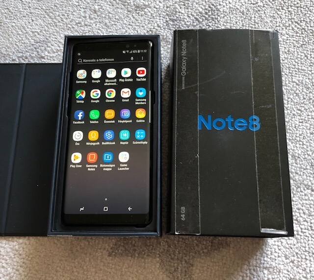 Elado egy nagyon szep allapotu fekete szinu gyarilag fuggetlen samsung Note 8-as 64Gb-os (SM-N950F/DS) dual simes telefon toltojevel, dobozaval.