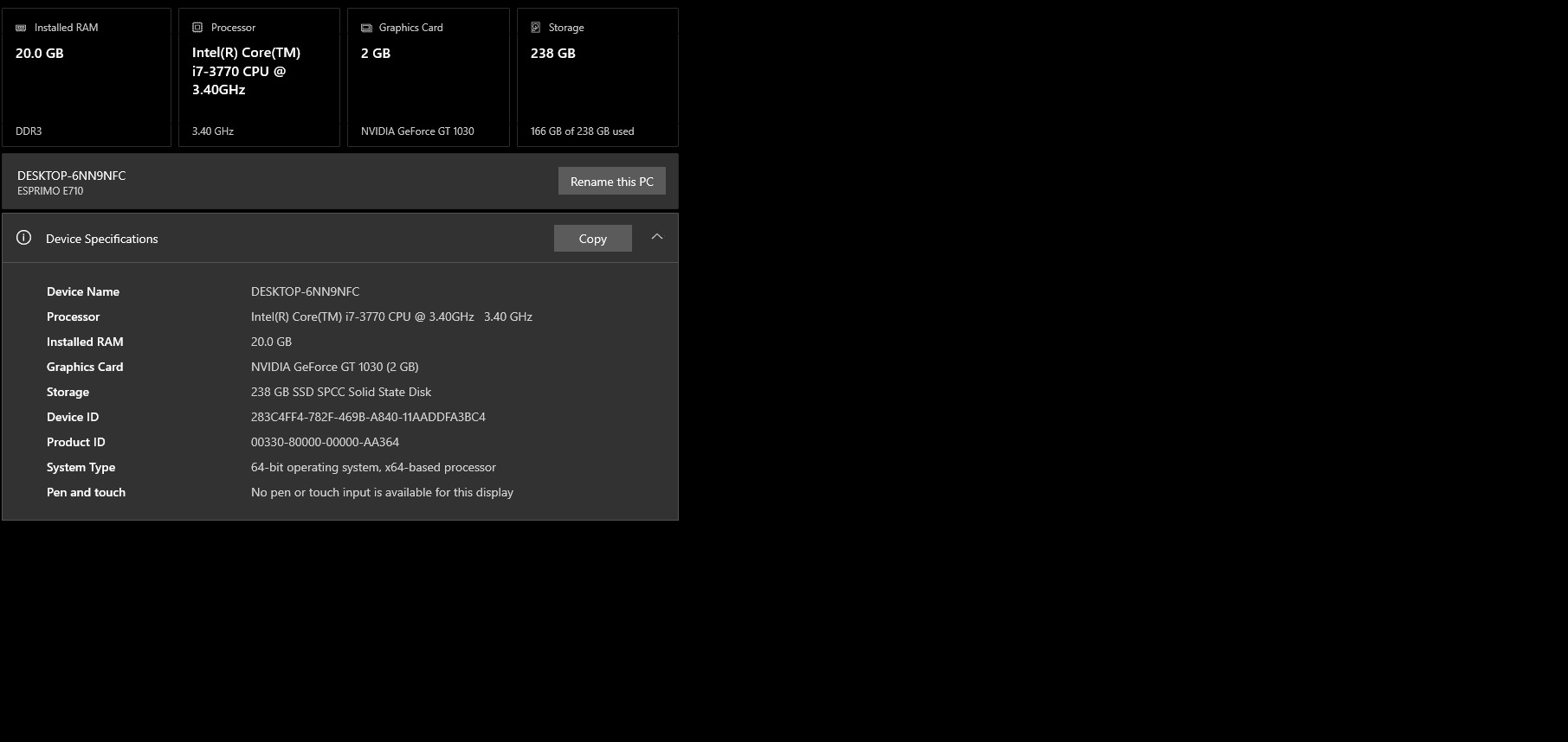 Fuji pc i7 20gb nvidia gt 1030