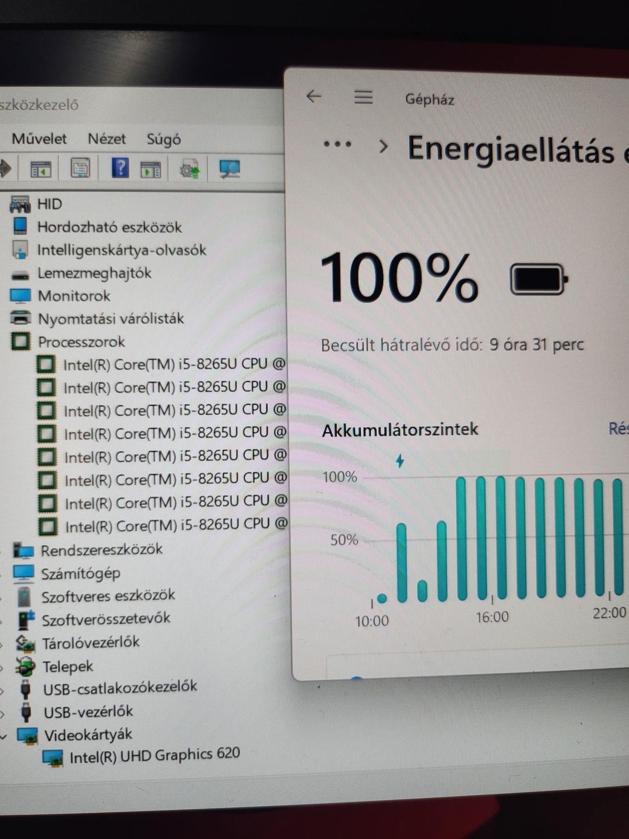 Intel Core i5 8250u 4mag,8szál,max.:8x3,4Ghz