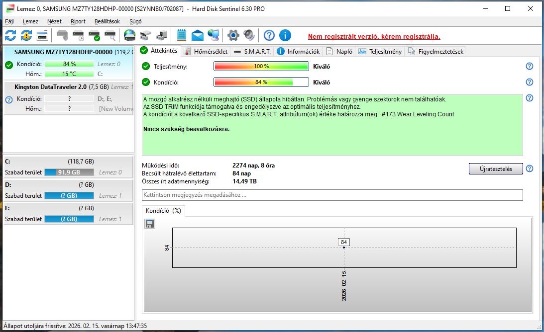 Drive: SAMSUNG MZ7TY128HDHP-00000, 125.0 GB, Serial ATA 6Gb/s