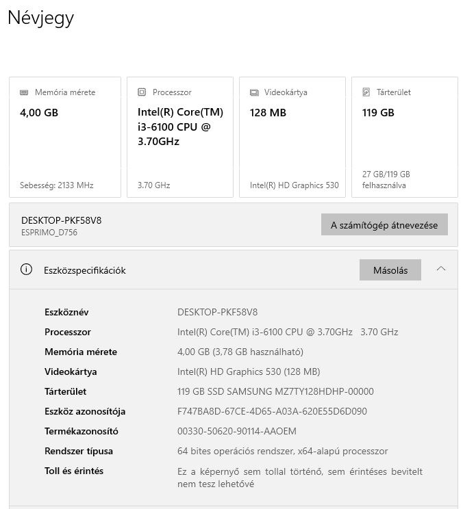 A Windows digitális licensszel aktivált. Tápkábellel adom.