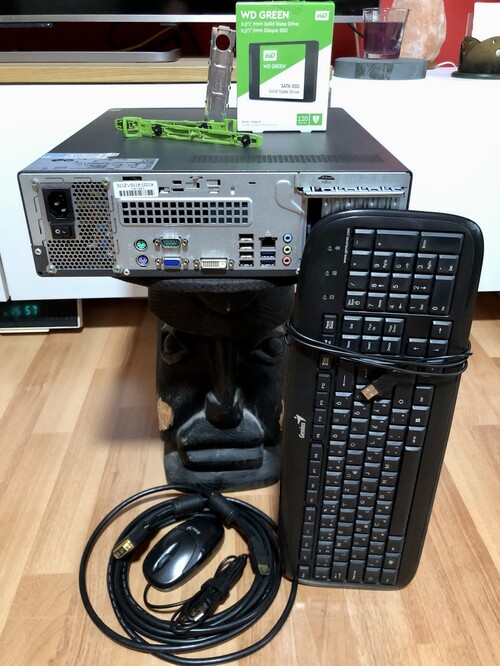 Adom hozzá a fotón látható: 3.5 collos hdd-hez való gyors rögzítősíneket a Fujitsutól, DVI-HDMI kábelt, Genius Slimstar 110 usb-s billentyűzetet és egeret is.