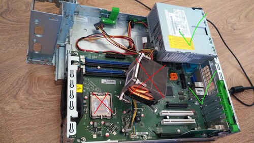 A ház, alaplappal, táppal. Valamelyik rossz belőle.
